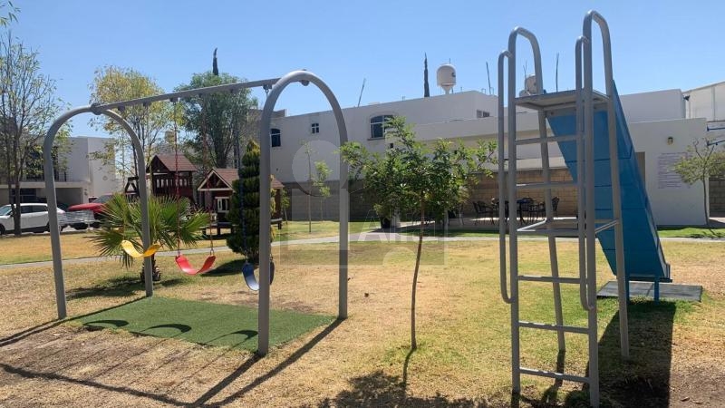 Casa en Renta – Fracc. Monterreal, Villa de Pozos. Por zona de Fracc. Santa Barbara y Montena, entrando por Walmart San Remo de carr. 57. Modelo de casa San Patricio, ubicada dentro de Circuito Privado con acceso controlado y video vigilancia, frente a zona de áreas verdes, Palapa Social con baños y juegos infantiles.